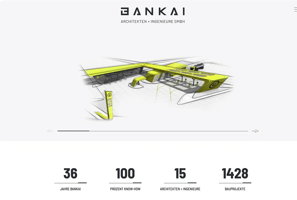 Das Ergebnis ist eine ruhige, strukturierte Website, die die Projekte und die Arbeitsweise von Bankai Architekten in den Vordergrund stellt.