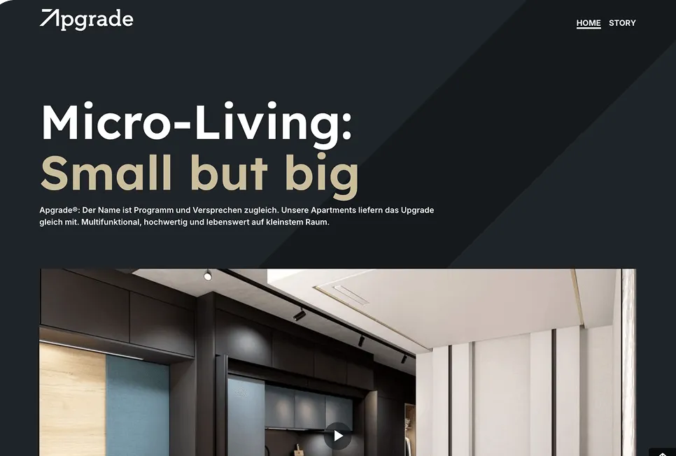 Mit dem Apgrade-Projekt wurde ein neues Wohnkonzept vorgestellt, das kompakte Wohnräume mit hohem Nutzwert verbindet. Die digitale Präsenz sollte dieses Konzept verständlich darstellen und erlebbar machen.
