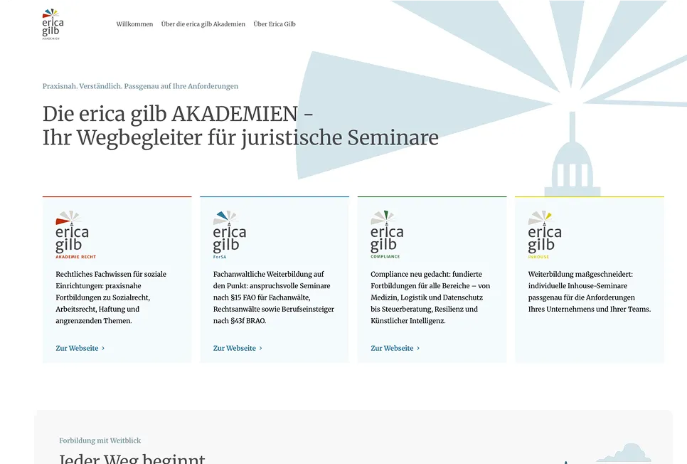Die erica gilb AKADEMIEN bieten fachlich orientierte Seminare und Weiterbildungen in verschiedenen Themenbereichen an. Das Angebot richtet sich an klar definierte Zielgruppen und ist in mehrere eigenständige Akademien gegliedert.